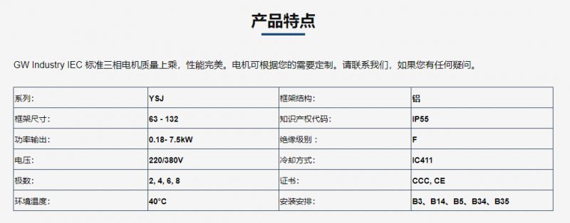 > GW INDUSTRY 标准电机